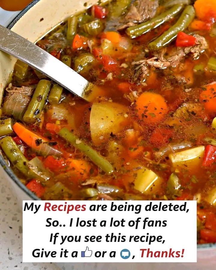 Warm, hearty, and old-school comforting — here’s a classic Beef Vegetable Soup that tastes like it’s been simmering all day 🥣
