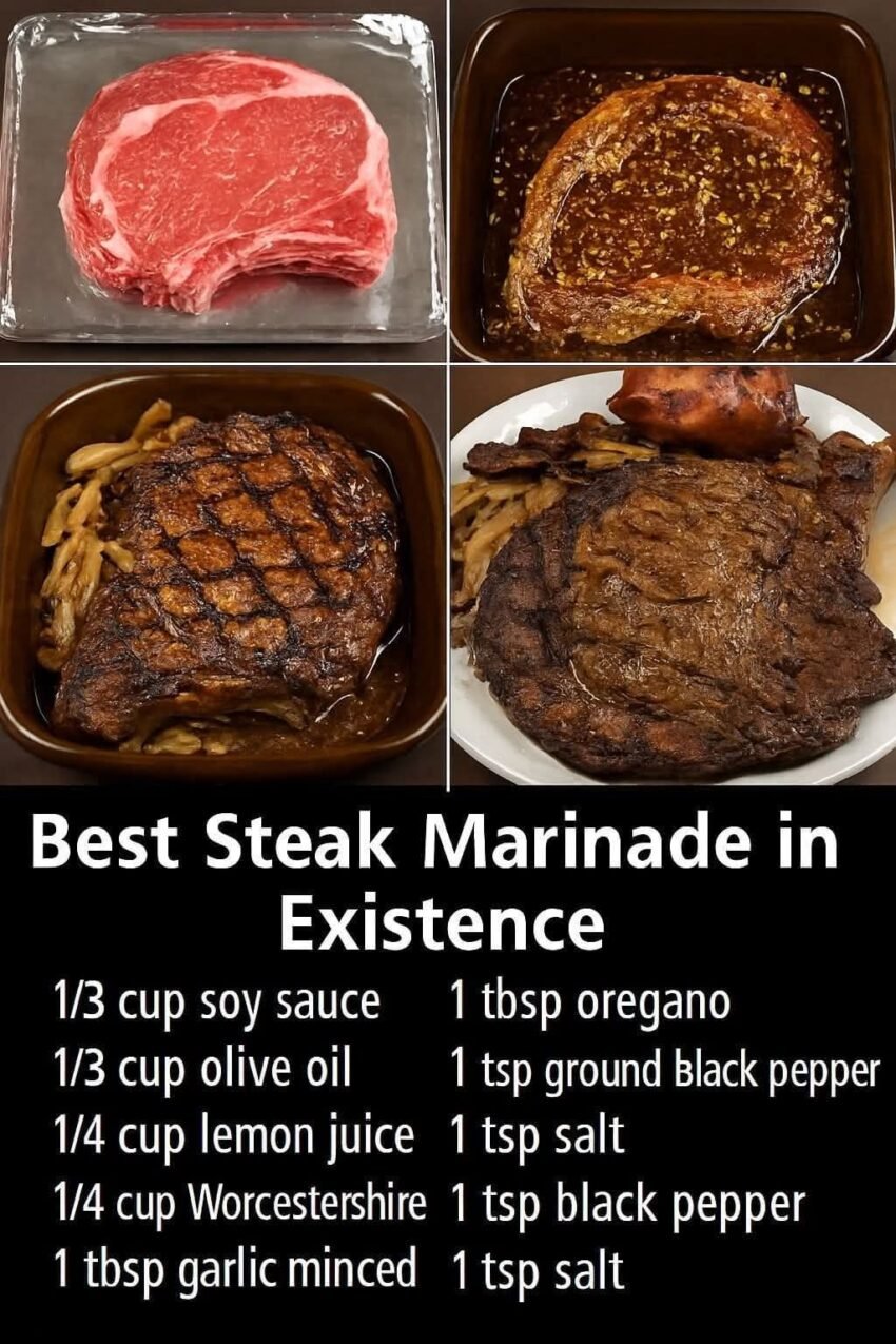 Alright—this is the “people-ask-for-the-recipe-after” steak marinade. It works on ribeye, sirloin, flank, skirt, or NY strip. Bold, balanced, and impossible to mess up.