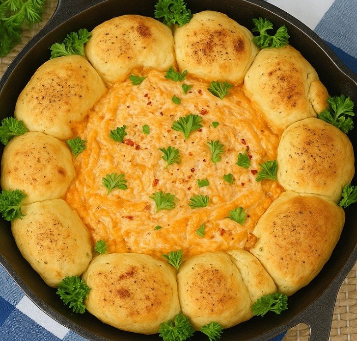 💡 Tip: For extra pizzazz, you can make small cuts along the outer edge of the dough before baking to create a “braided” effect around the dip.