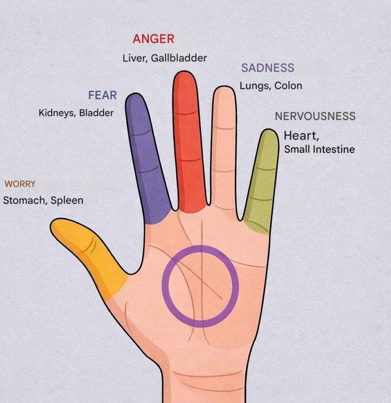Selon cette approche, chaque doigt est lié à deux organes internes ainsi qu’à certaines émotions ou états mentaux associés :