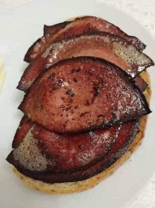 Fry bologna slices until golden brown and slightly crispy around the edges — about 2–3 minutes per side. If you like, press gently with a spatula for extra crispiness. - Toast the bread