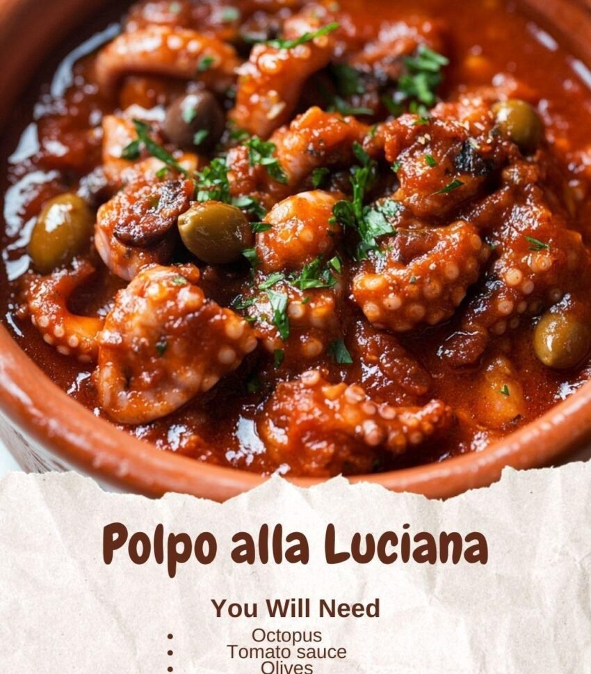 Ah, Polpo alla Luciana! 😋 That’s a classic Italian seafood dish from Naples, featuring tender octopus cooked in a rich tomato sauce with olives, capers, and garlic. Here’s a detailed overview and a traditional way to prepare it.