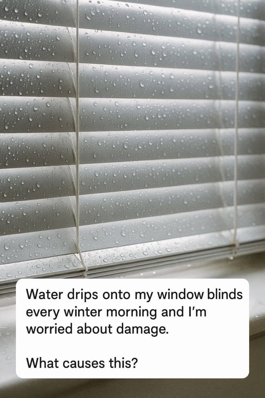 If water is dripping onto your window blinds on winter mornings, the most common cause is condensation — not a roof leak.